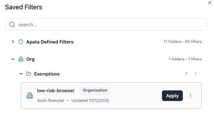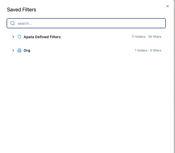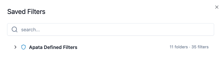 - Predefined filters – Provided by Apata. Ready-to-use filters that everyone can apply but no one can edit or delete.